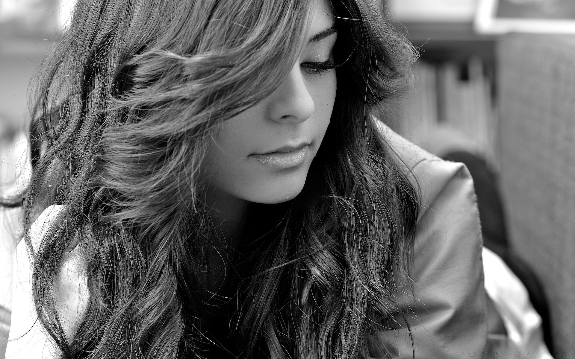 Ein trauriges Mädchen. Den Kopf in zwei Farben färben