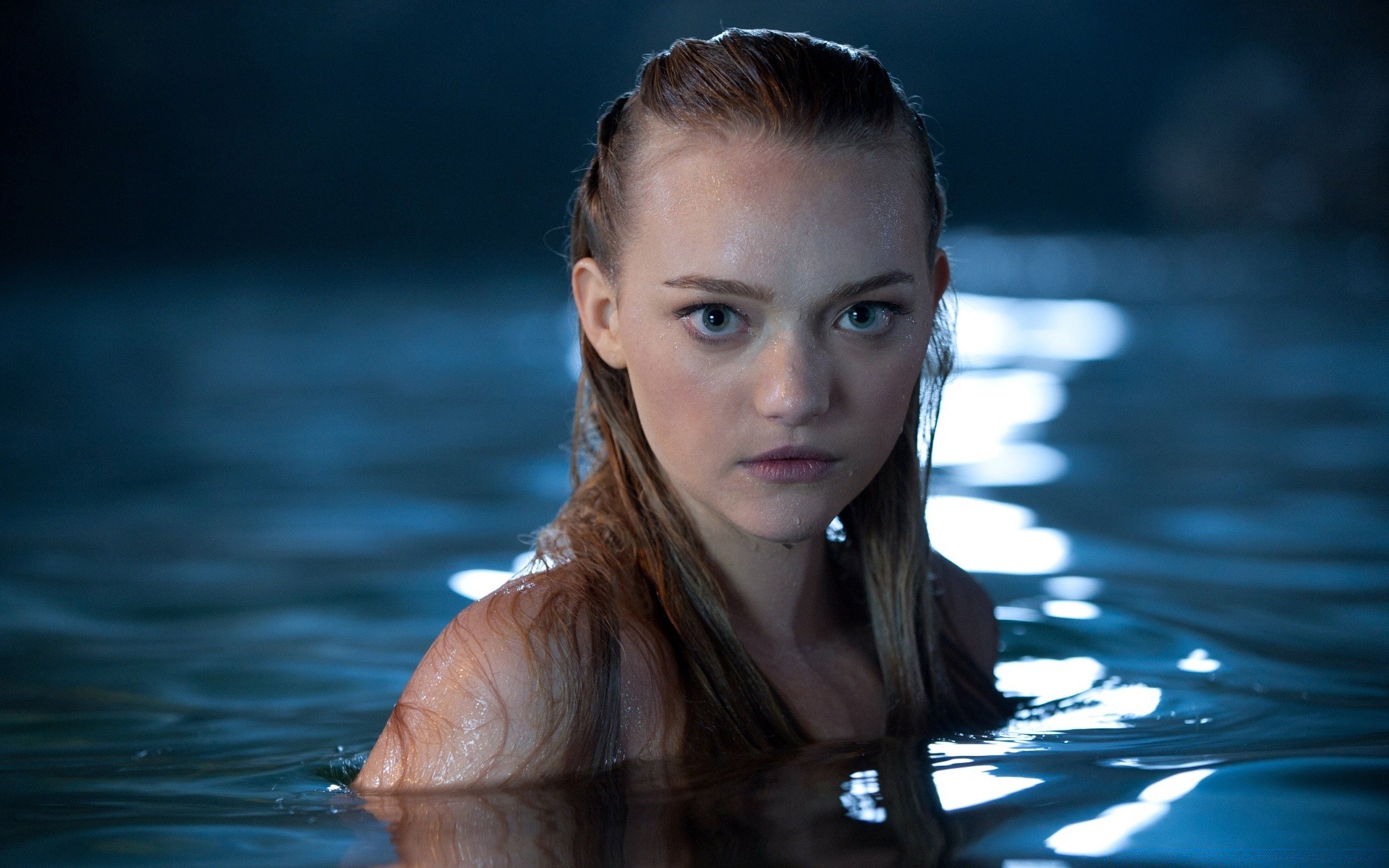 Mädchen mit Waffen auf dem Hintergrund des Meeres aus dem Film Fluch der Karibik