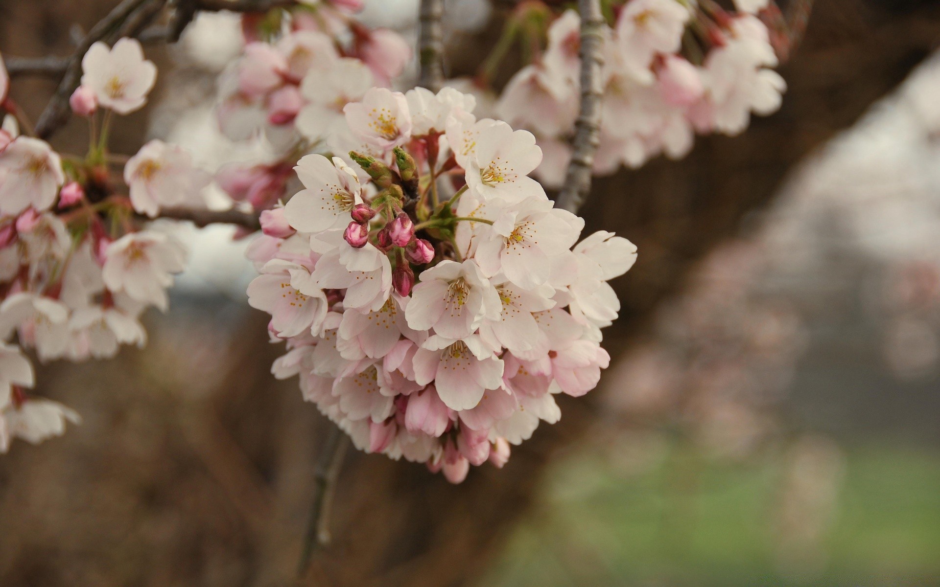 Kirschblüte auf einem Zweig auf Himmelshintergrund