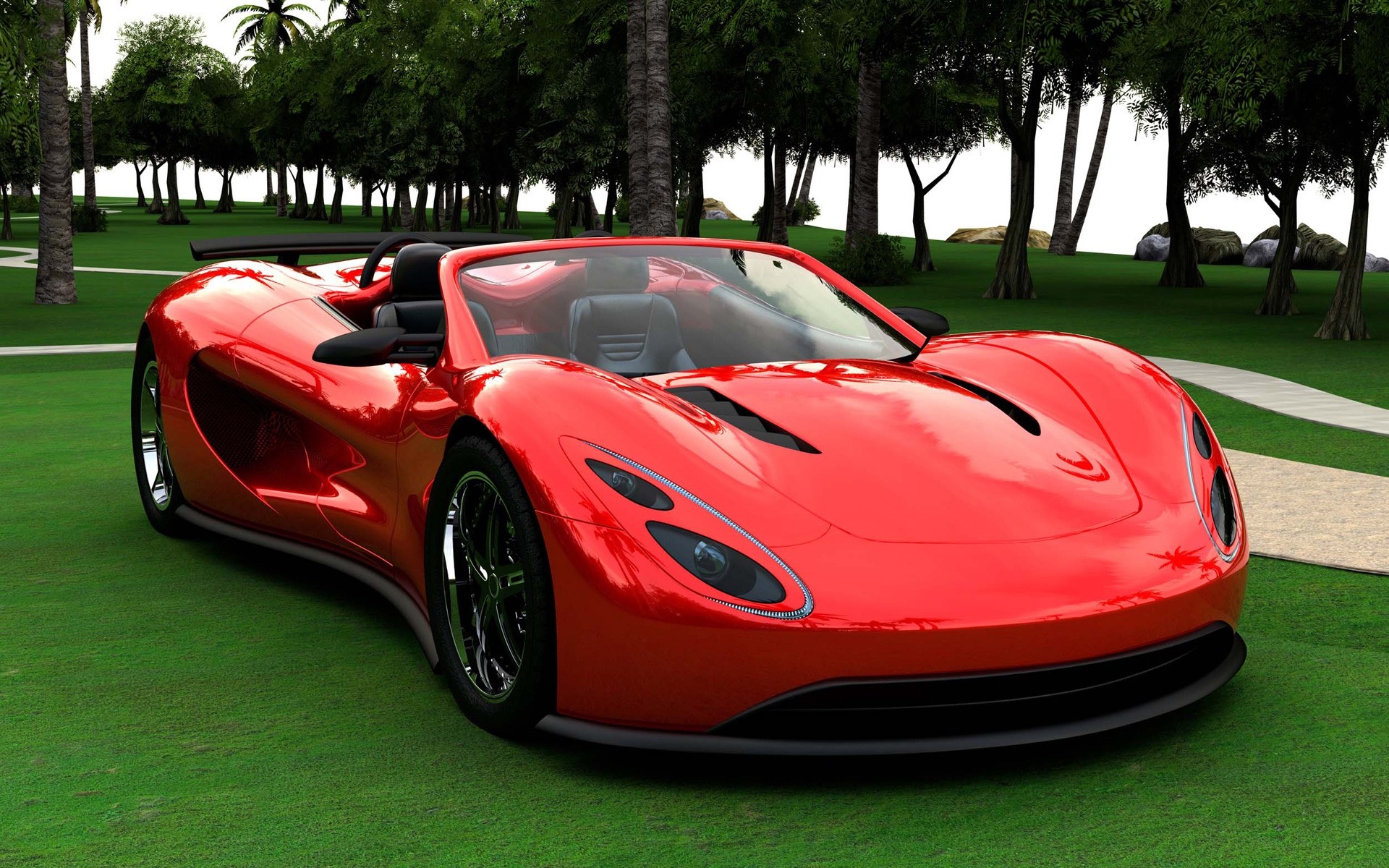 Rotes Auto auf grünem Rasen