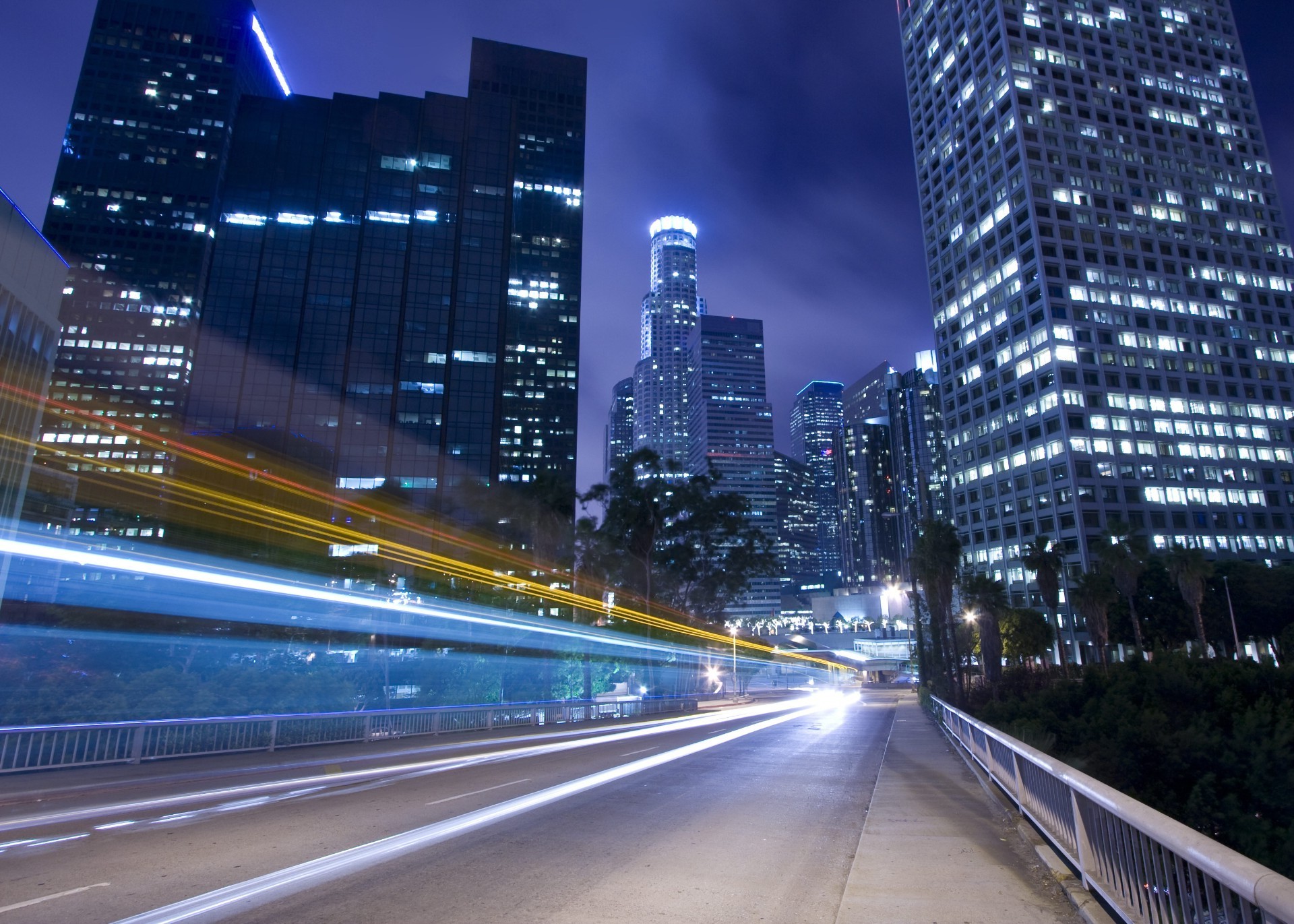 Leuchtende Wolkenkratzer in der Nachtstadt