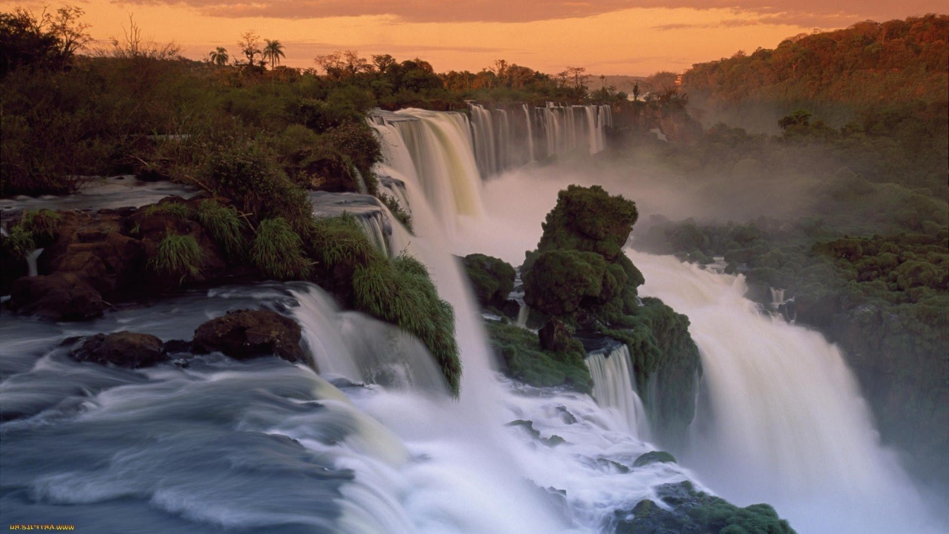 Ein Fluss in Europa, Wasserfälle unter Bäumen