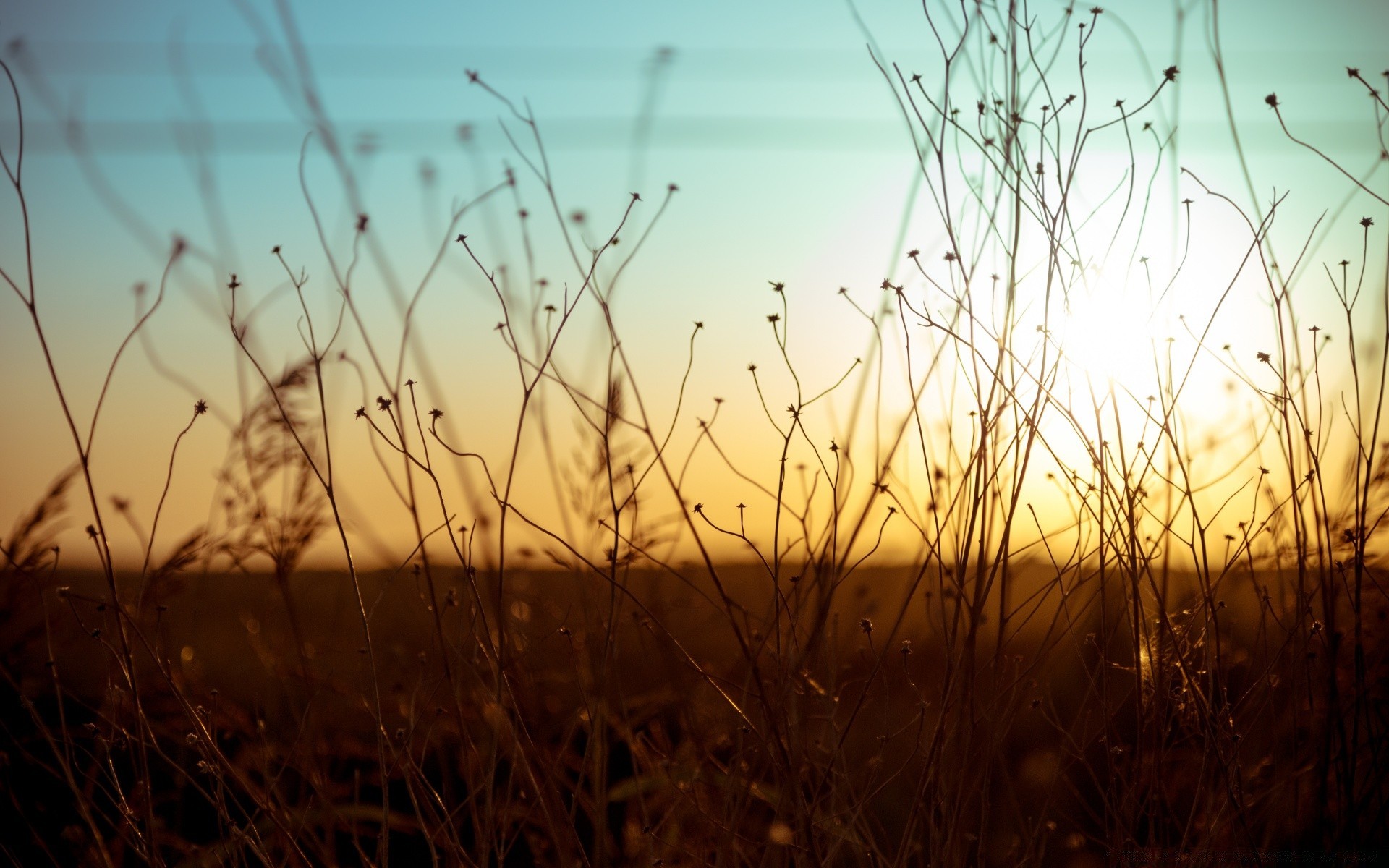 Trockenes Gras auf verschwommenem Feldhintergrund