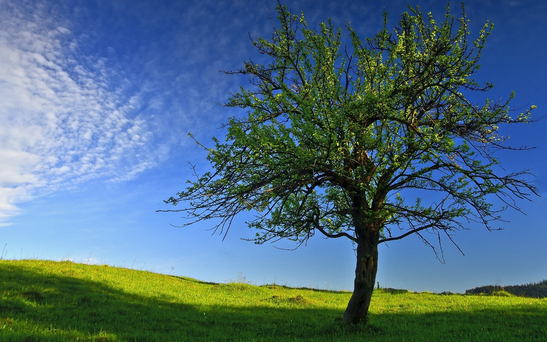 Ein einsamer Baum bei Sonnenuntergang des Tages