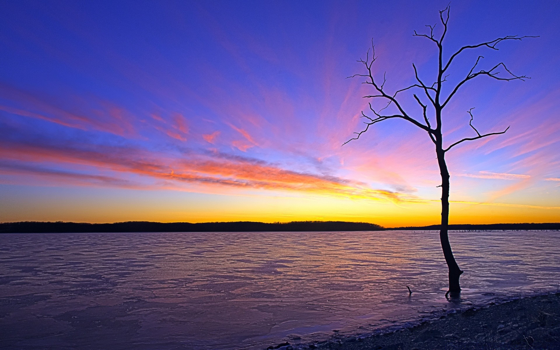Die Sonne in der Wüste, der Baum bei Sonnenuntergang