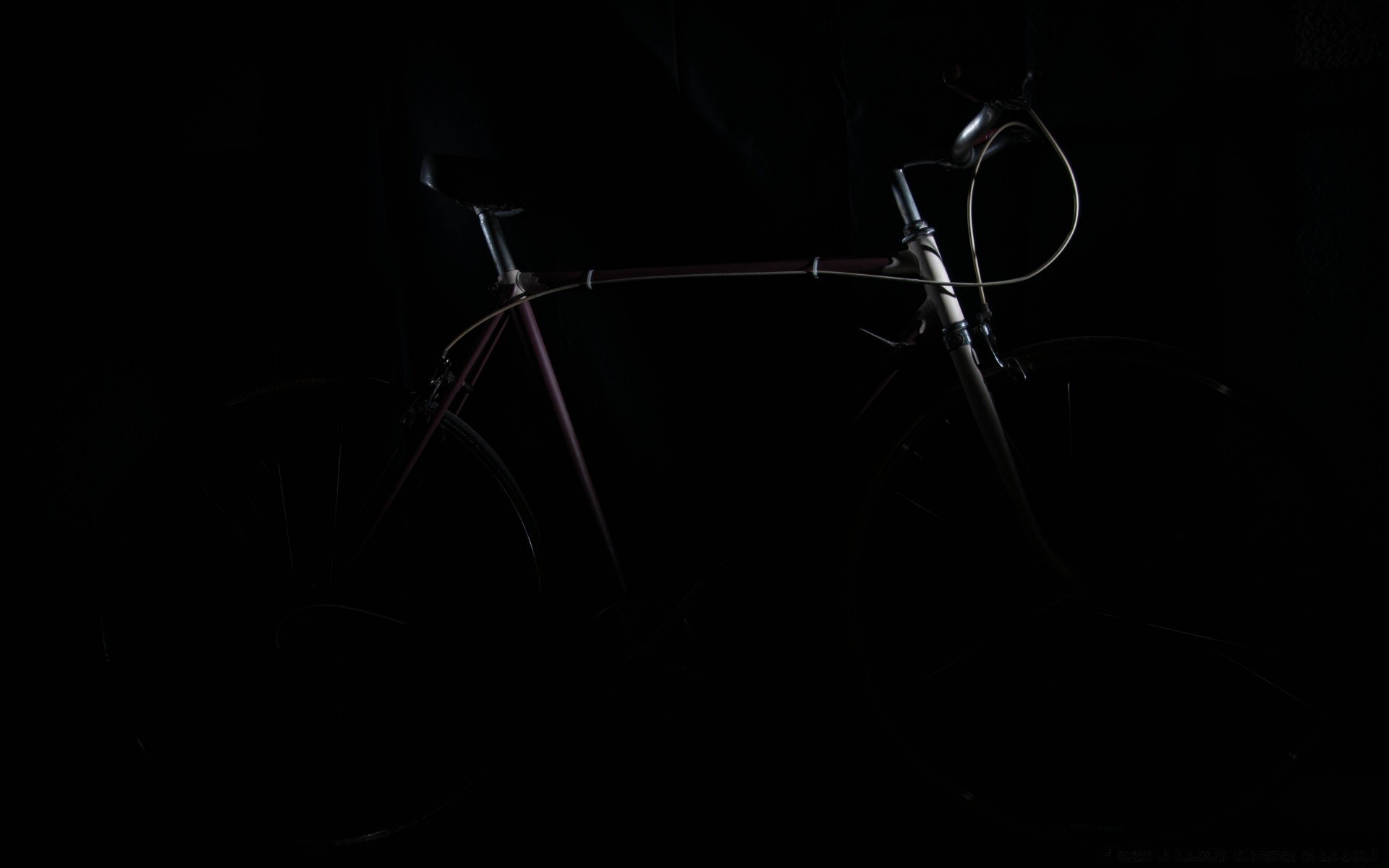 Ein kleiner Lichtstrahl beleuchtet einen kleinen Teil des Fahrrads im Dunkeln