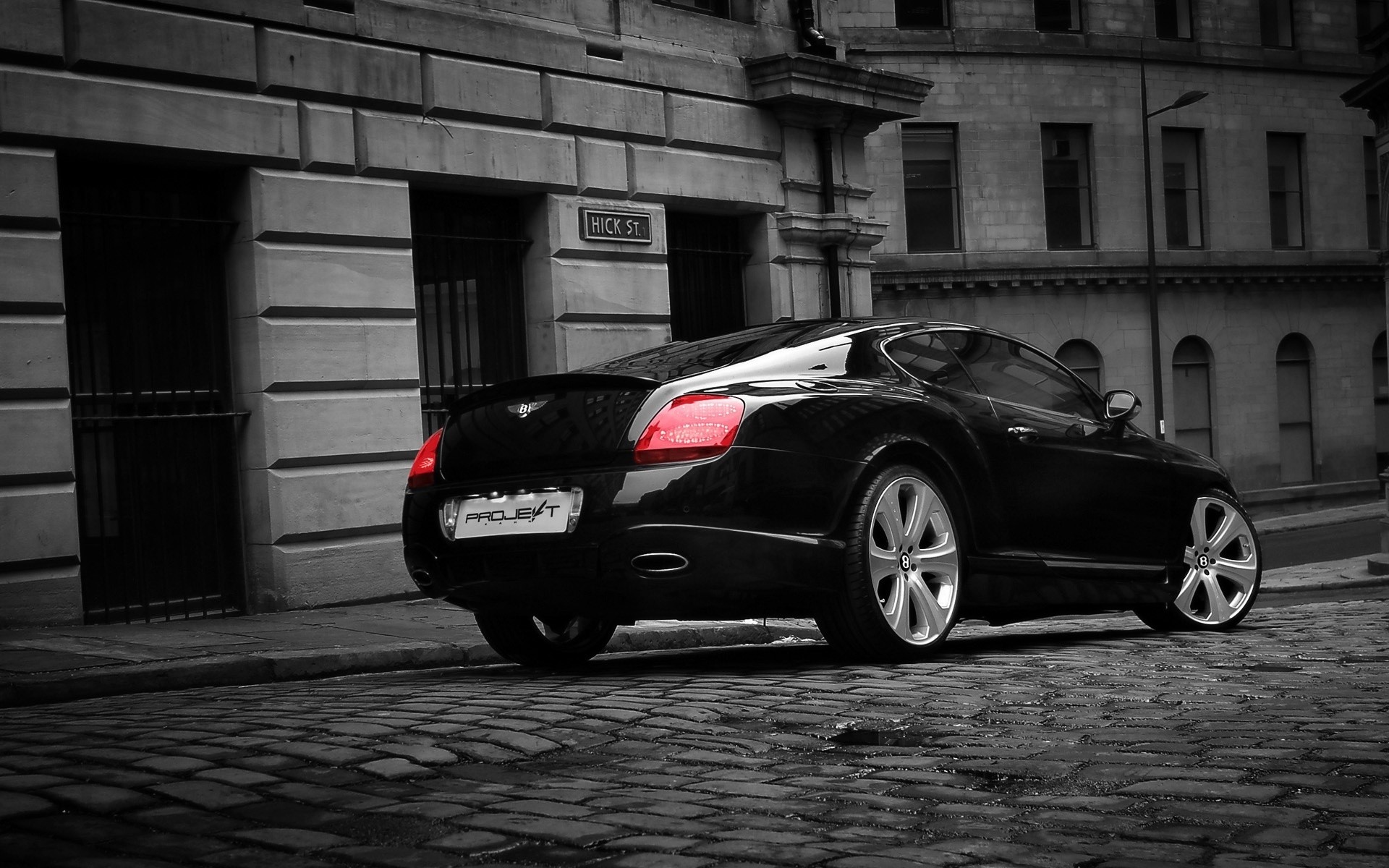 Schwarzer Bentley vor dem Hintergrund einer wunderschönen Landschaft