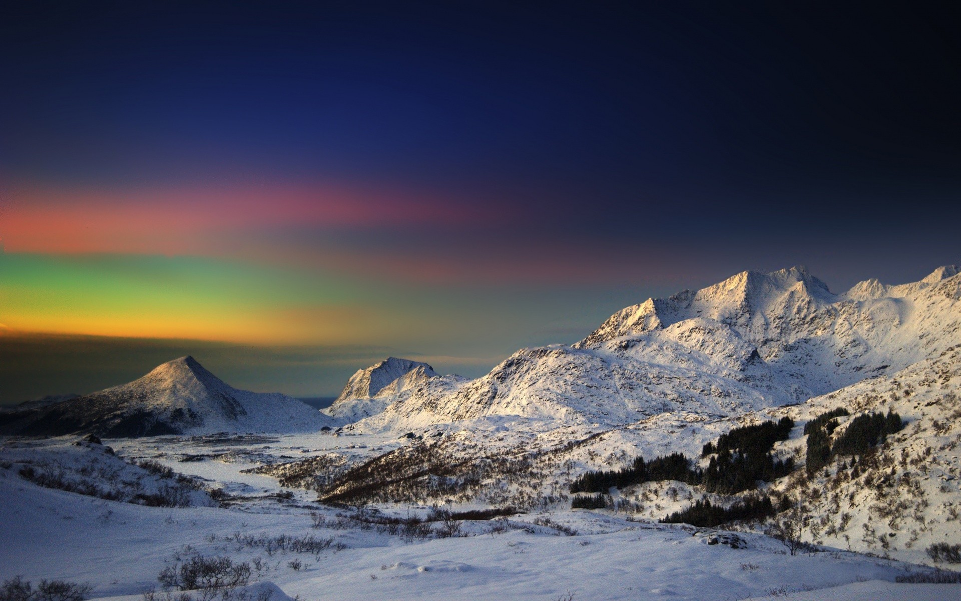 Die natürliche Schönheit der schneebedeckten Berge und Wälder