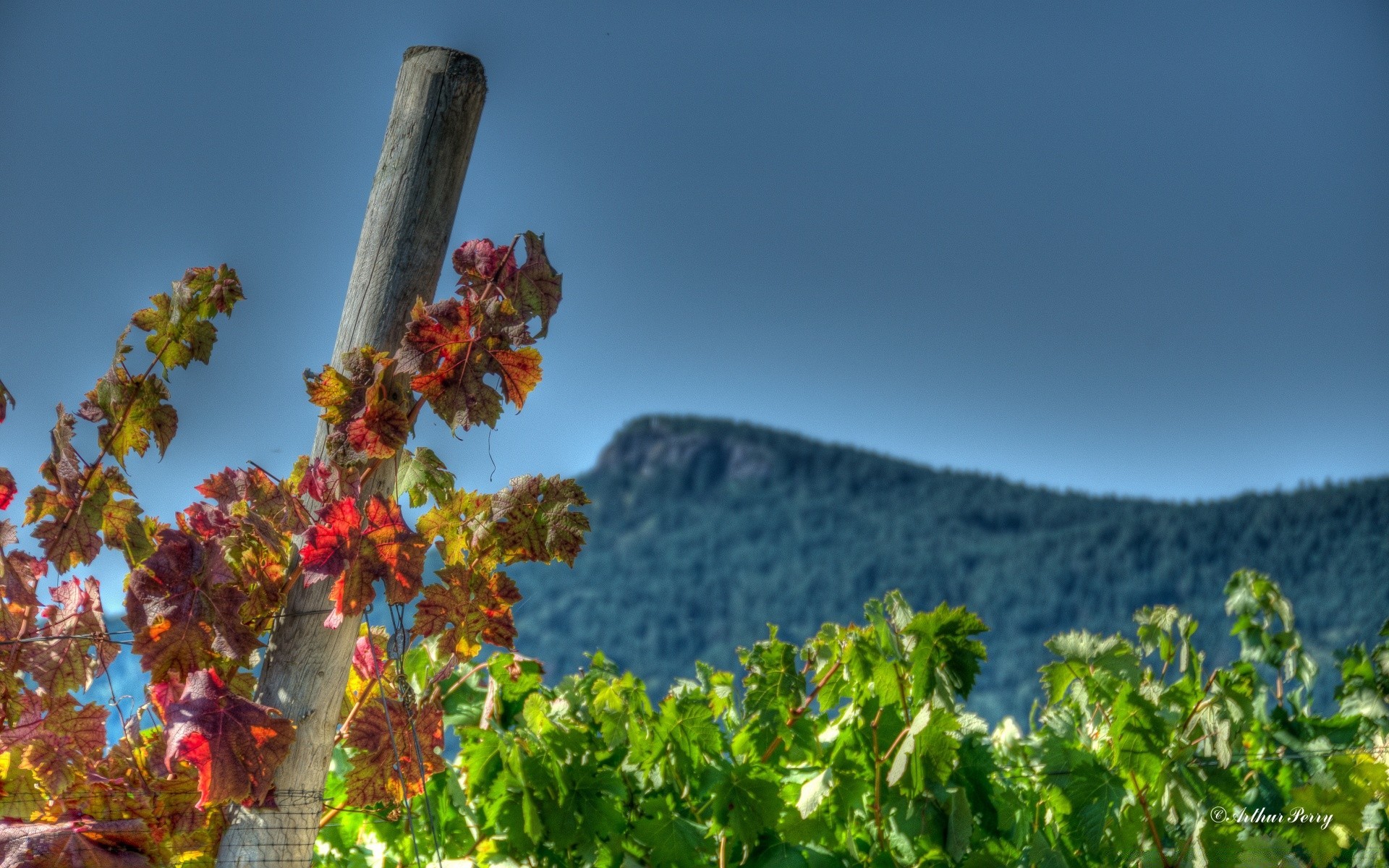 Herbst Natur auf dem Hintergrund der Berge, die Blätter der Trauben
