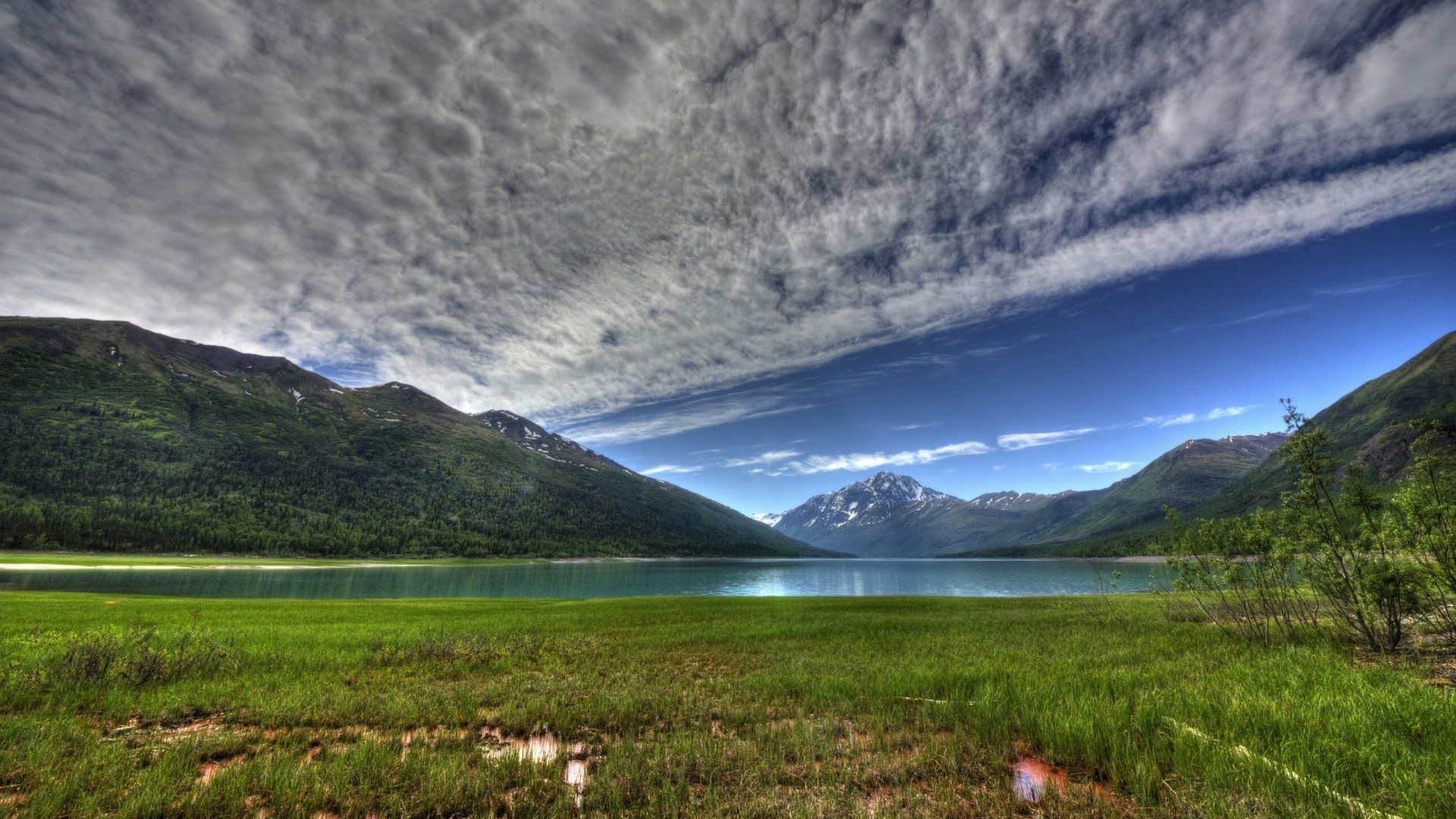 Rauer Himmel über dem Bergsee