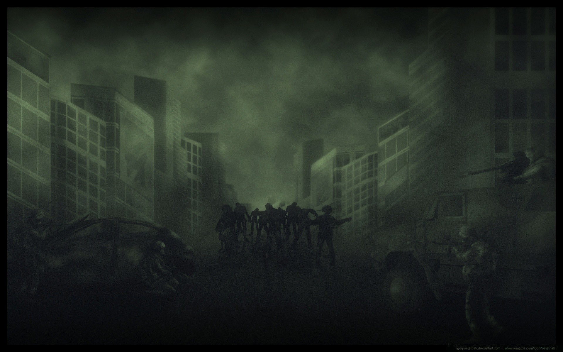 Infanterie-Bewegung im Stadtnebel