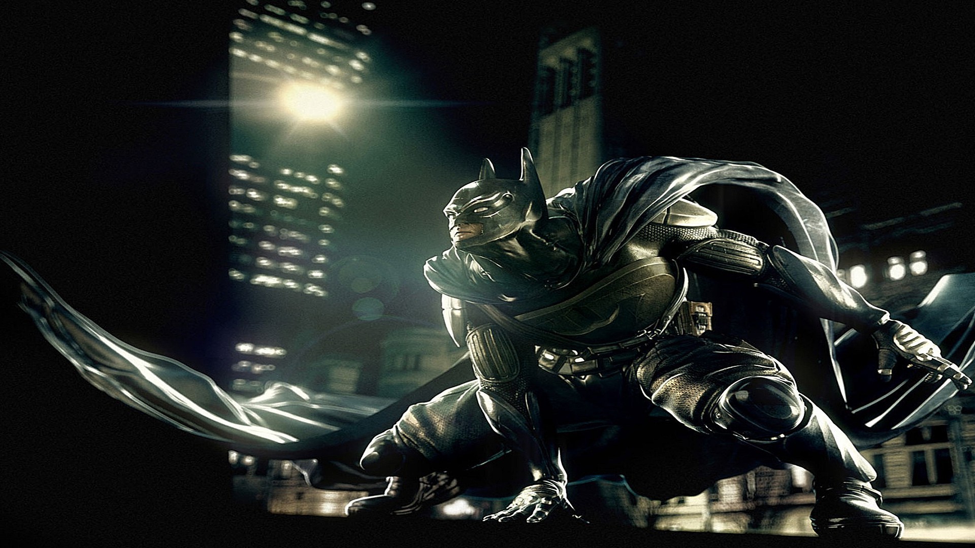 Superheld auf dem Hintergrund der Hochhäuser der Metropole