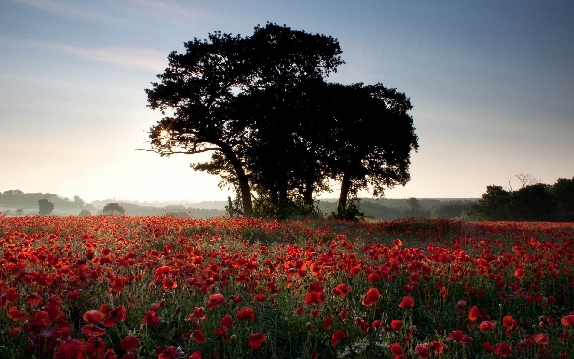 Grüne Pappeln und blühende Sonnenblumen - der Höhepunkt des Sommers