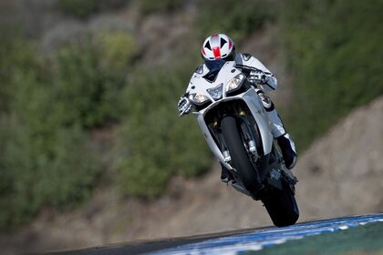 Biker auf einem Motorrad Foto in Geschwindigkeit
