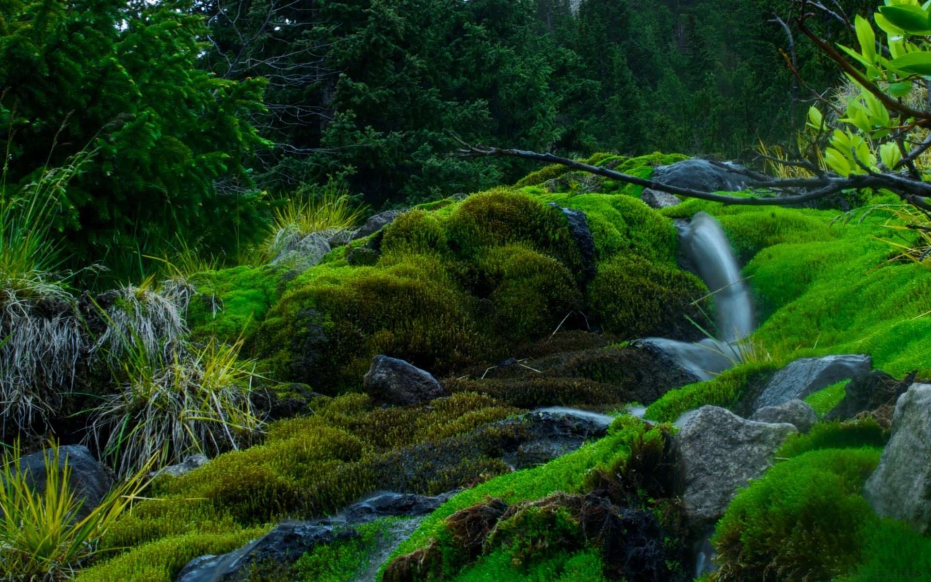 Ein außergewöhnlicher wasserfall im hintergrund der morgendämmerungEin außergewöhnlicher Wasserfall im Hintergrund der Morgendämmerung