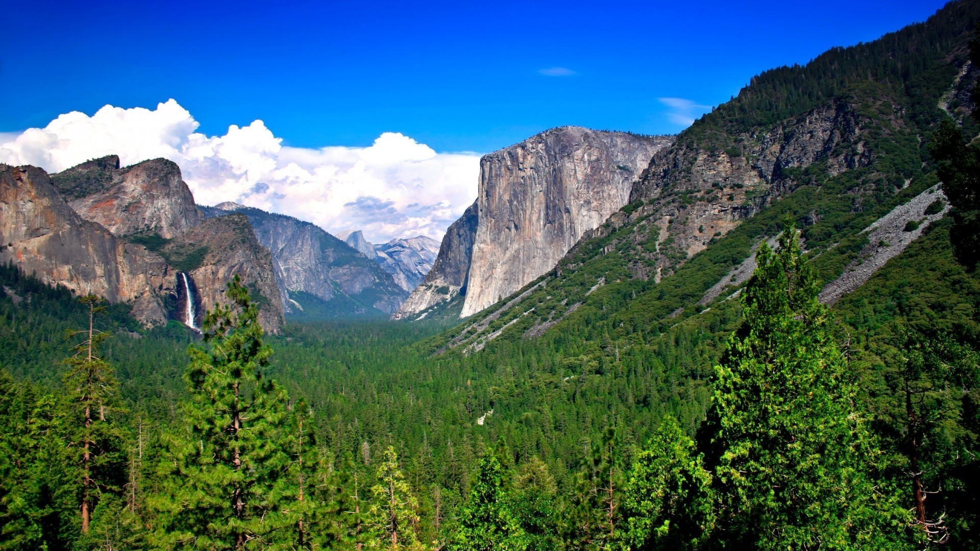 Ein Foto mit einem transparenten Teich unter den Steinen auf dem Hintergrund eines hohen Nadelwaldes und der Berge