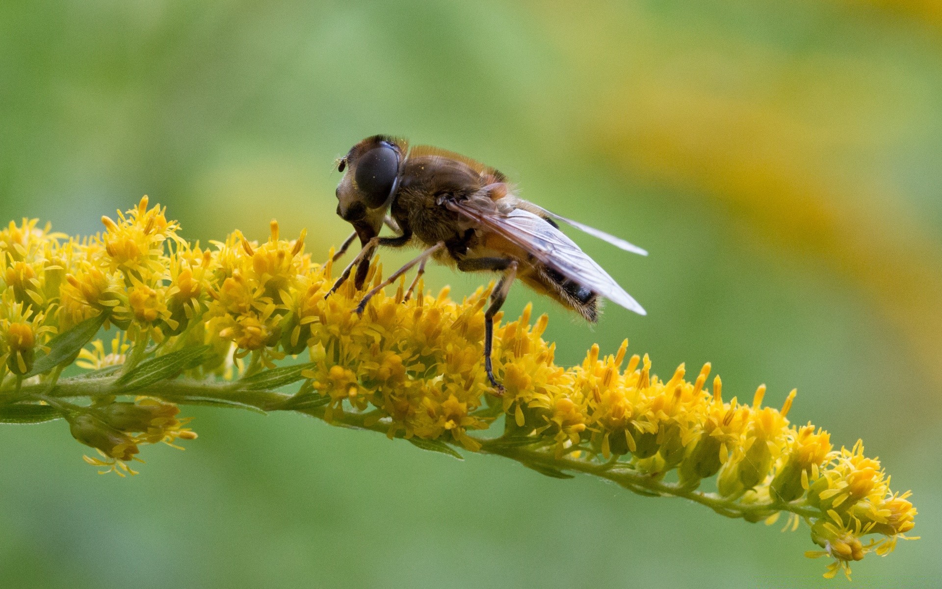 Eine biene auf einem gelben blatt in der natur wird das oft sehenEine Biene auf einem gelben Blatt in der Natur wird das oft sehen