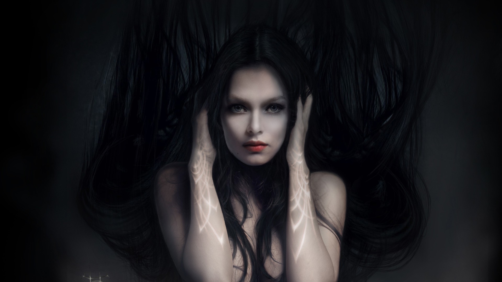 Foto eines mädchens mit schönen augen auf dunklem hintergrundFoto eines Mädchens mit schönen Augen auf dunklem Hintergrund