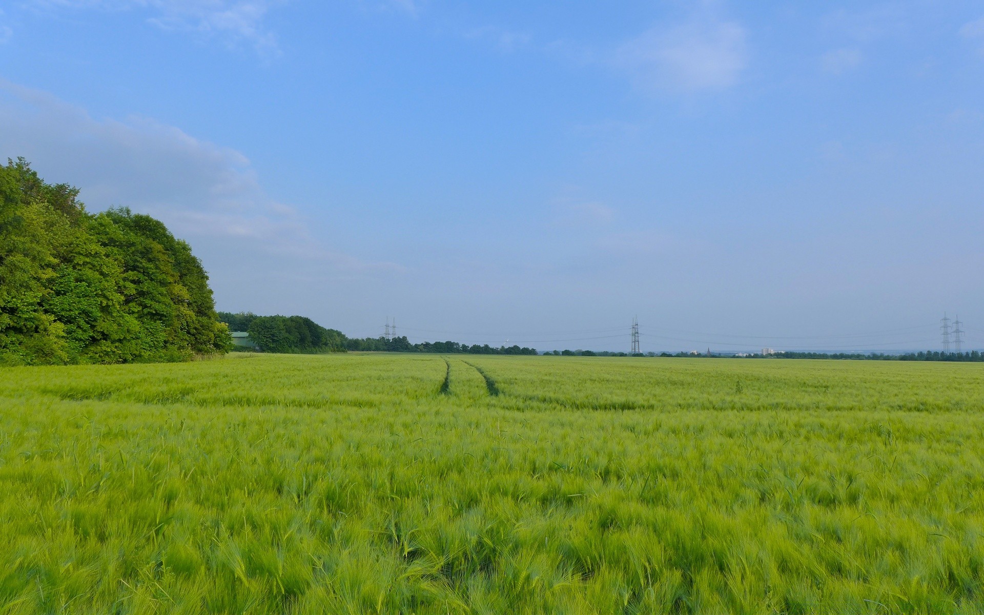 Feld gepflanzter Weizen blauer Himmel Horizont