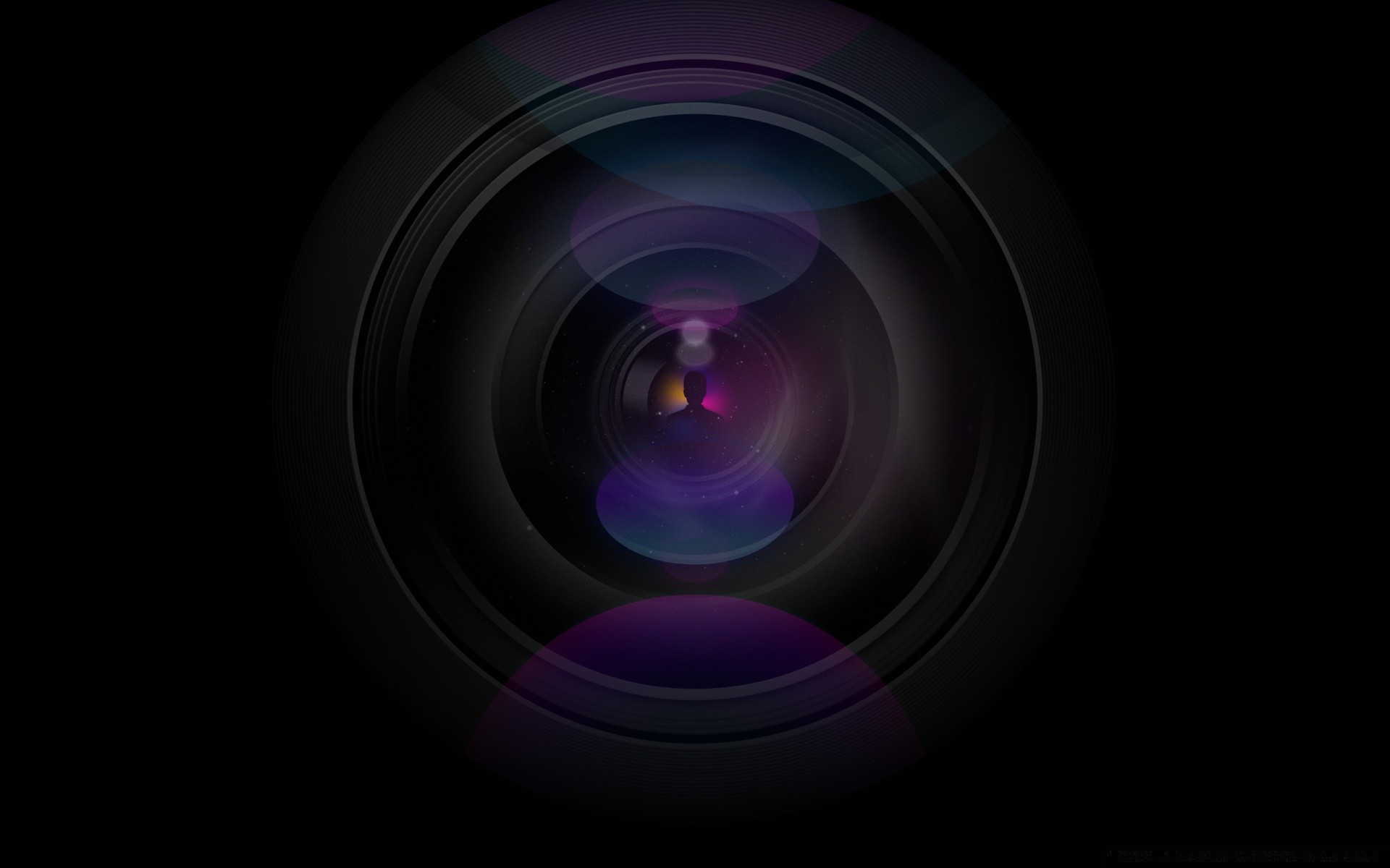 Schwarz-Weiß-Bild einer Kamera mit großem Objektiv