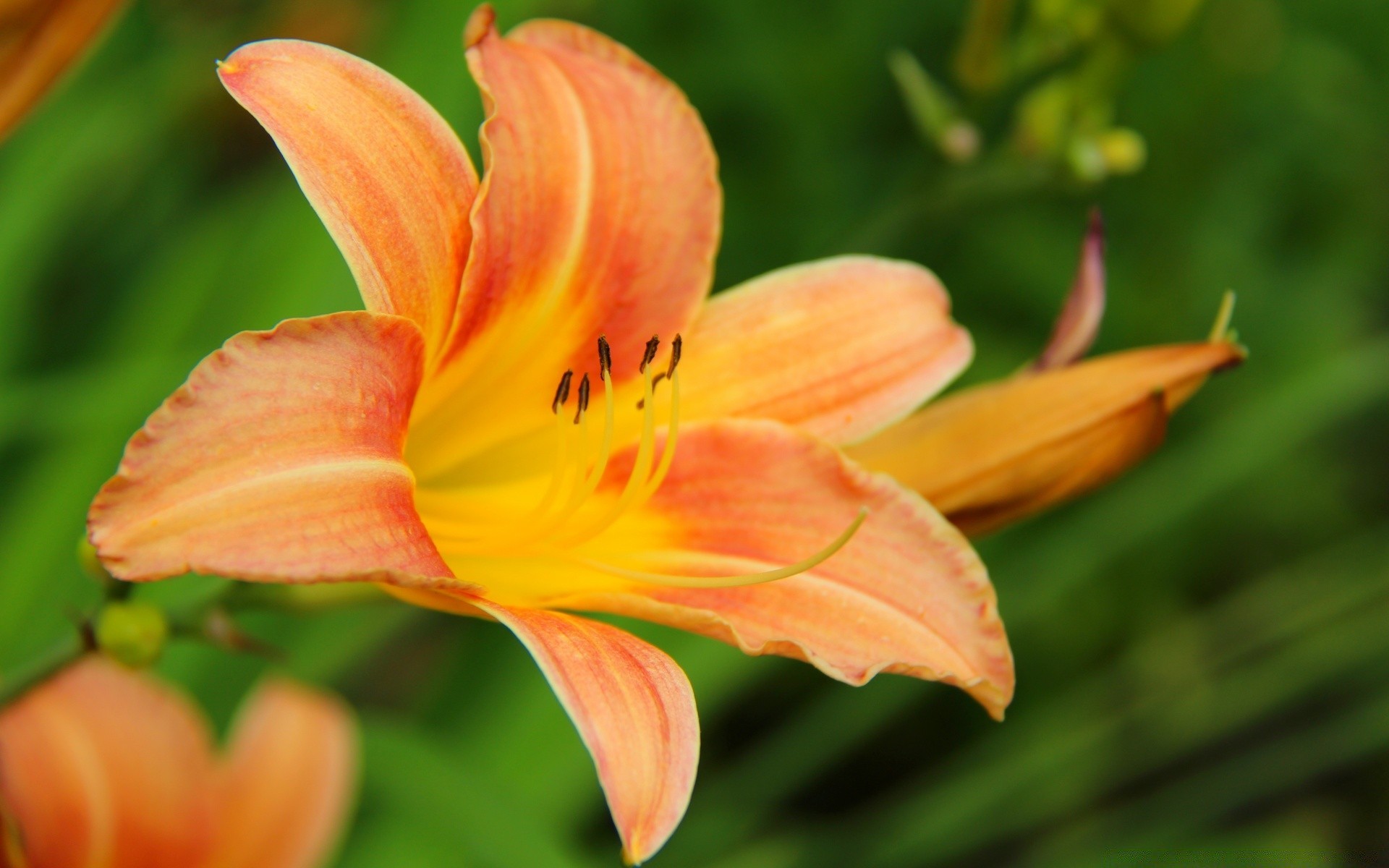 Blühende orange blume auf verschwommenem hintergrundBlühende orange Blume auf verschwommenem Hintergrund