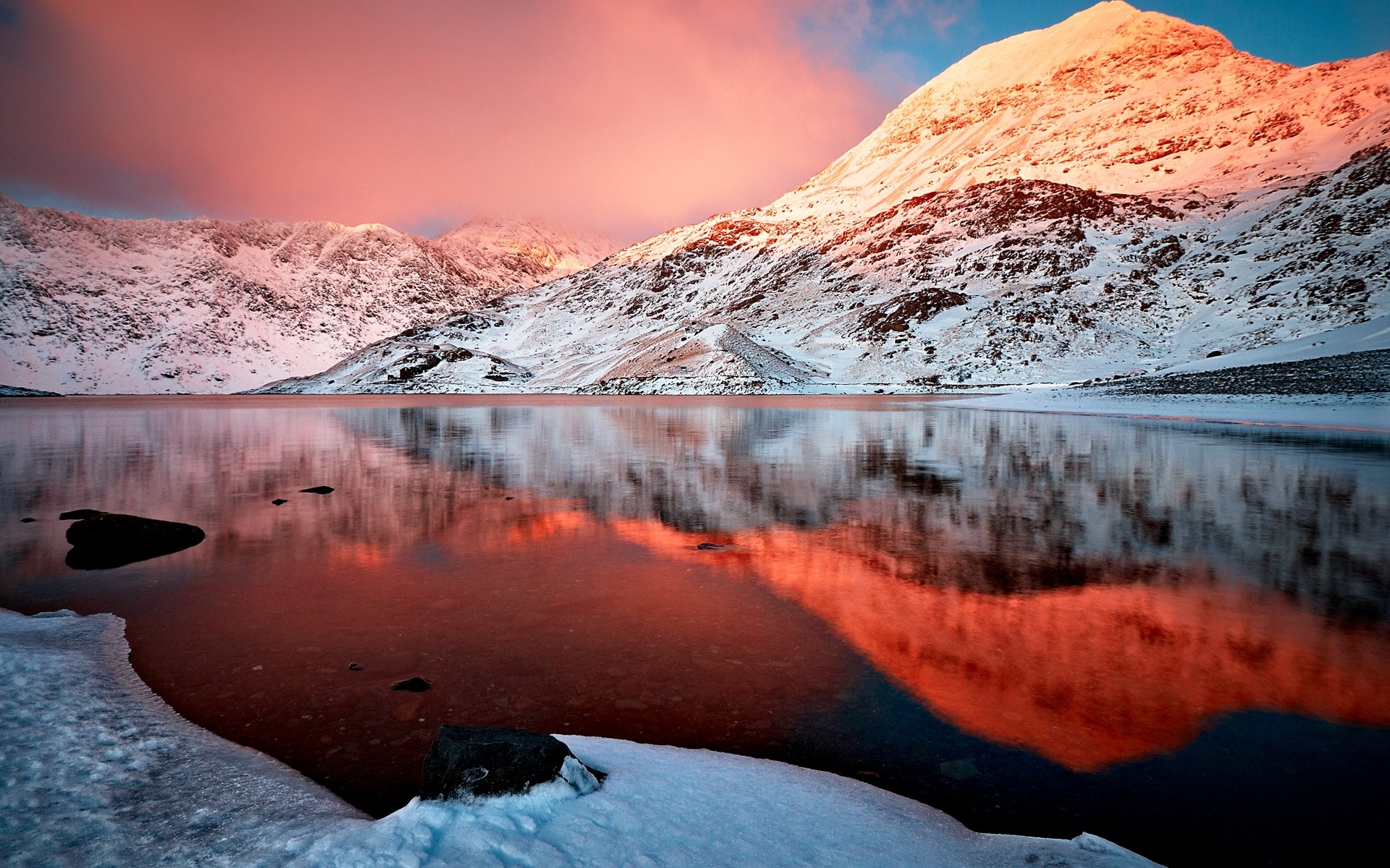 Herrliche schneebedeckte berge und ihre reflexion im wasserHerrliche schneebedeckte Berge und ihre Reflexion im Wasser