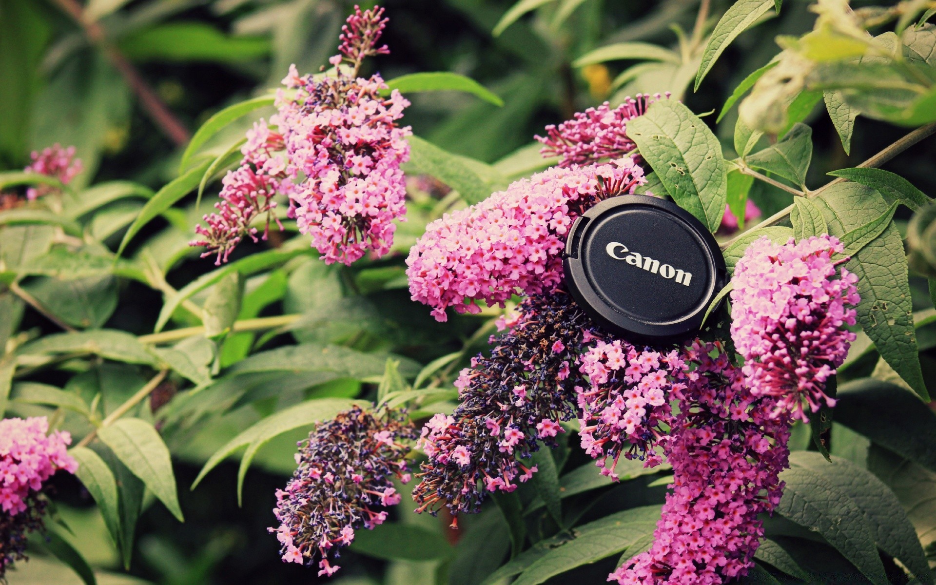 Ein Zweig mit gelben Blüten und violetten Blättern