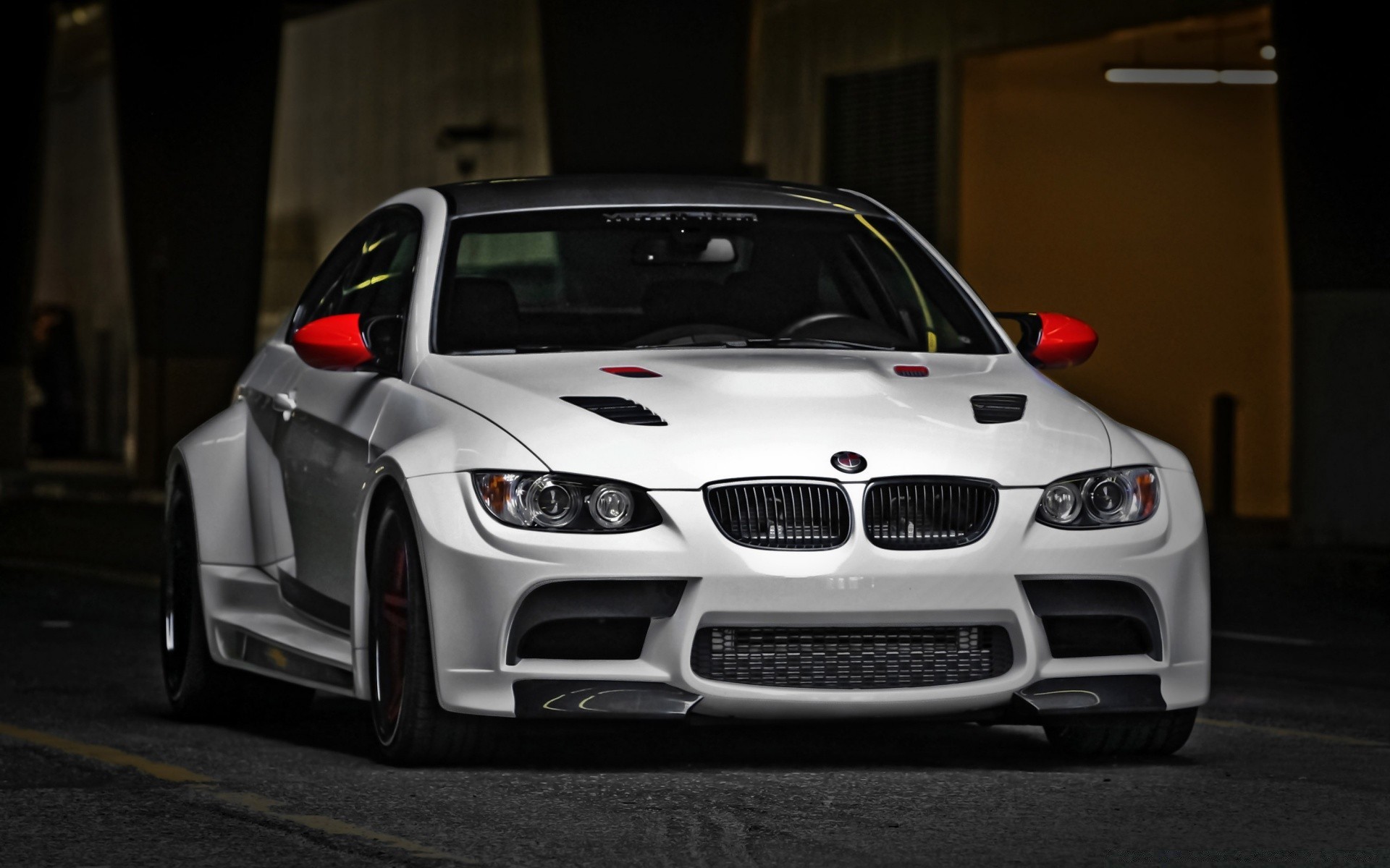 Grauer sportlicher BMW auf stylischem Treppenhintergrund