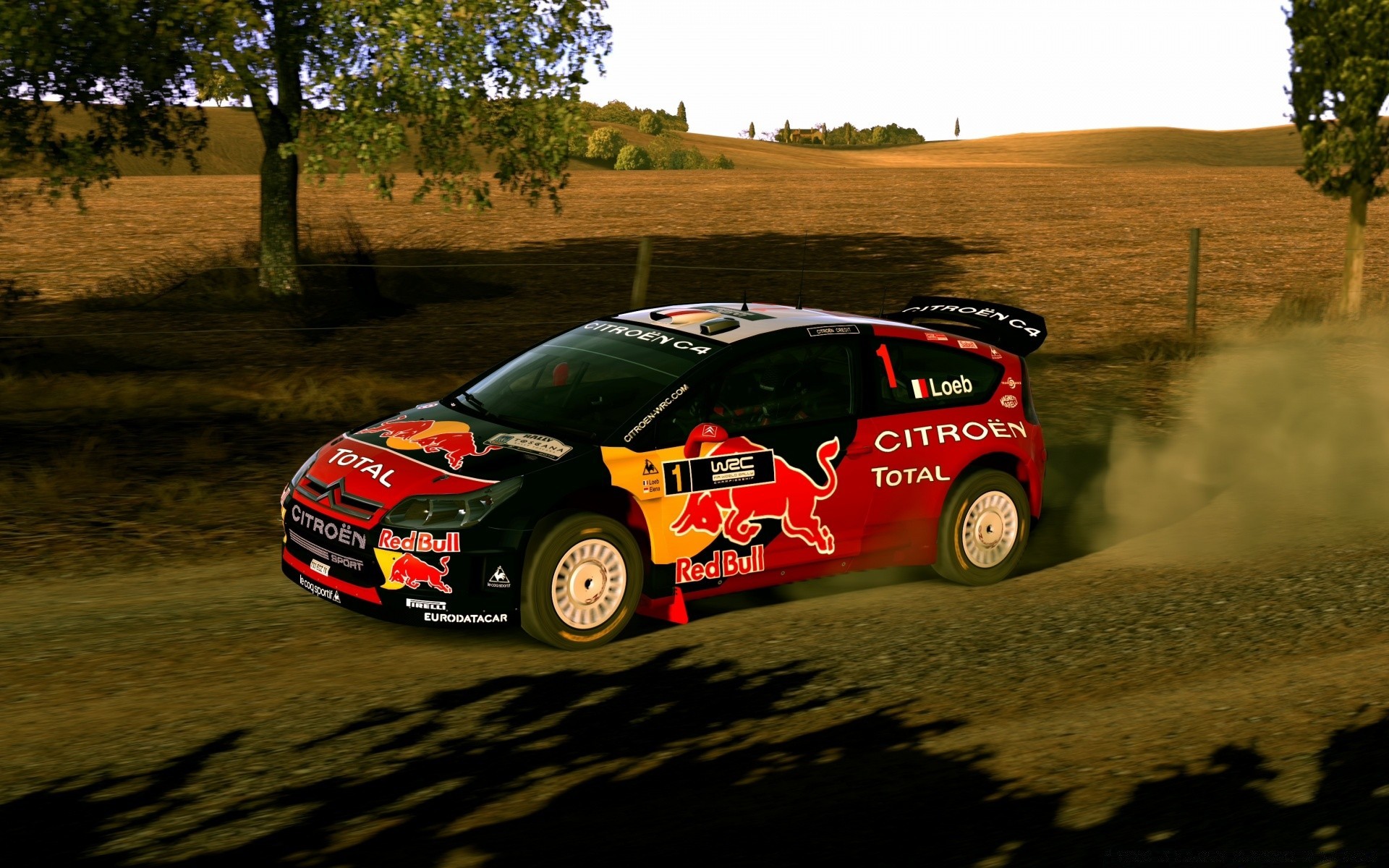 Rennwagen fuhr in Felder