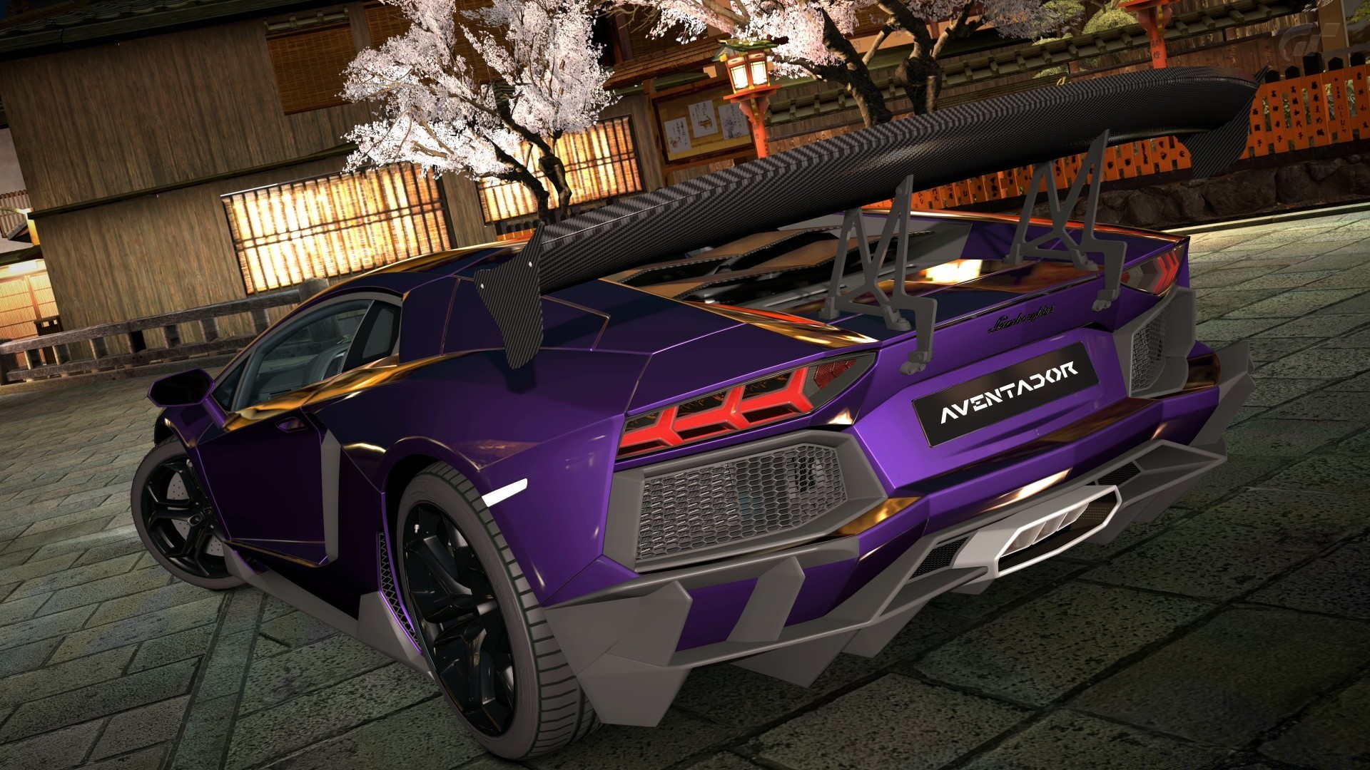 Gelbes rennauto vor dem hintergrund eines amphitheaters im computerspiel gran turismoGelbes Rennauto vor dem Hintergrund eines Amphitheaters im Computerspiel gran turismo