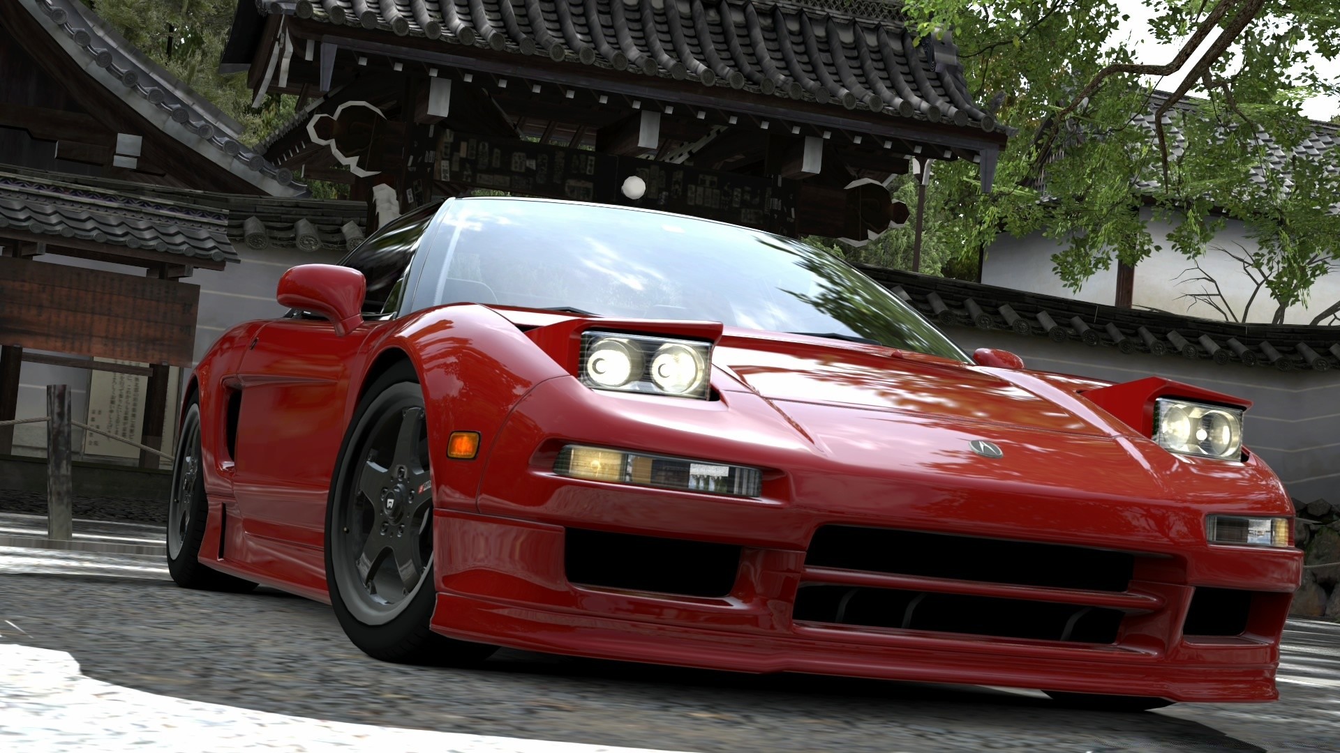 Goldener Porsche mit Reflexion auf der Motorhaube des Gebäudes