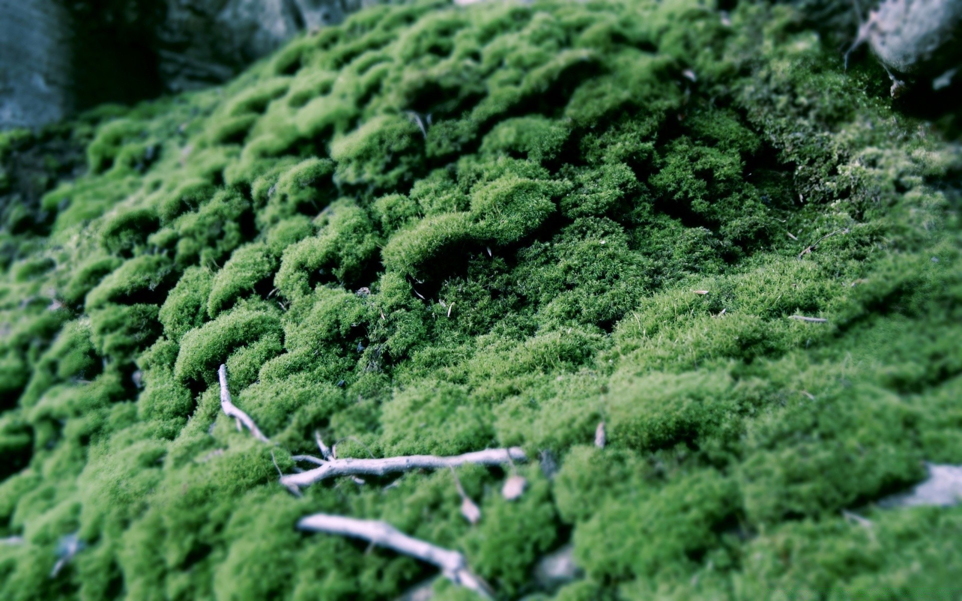 Nahaufnahme von Moos mit Zweigen auf Stein