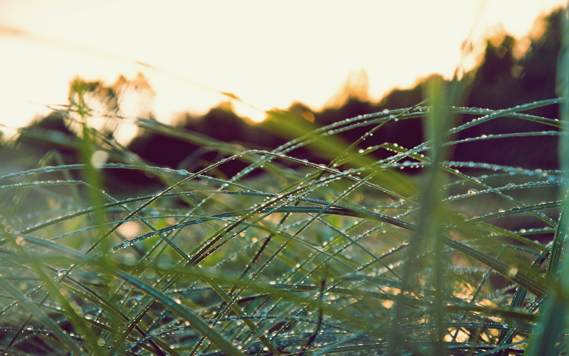 Die sonne spiegelt sich in den tautropfen auf dem gras widerDie Sonne spiegelt sich in den Tautropfen auf dem Gras wider