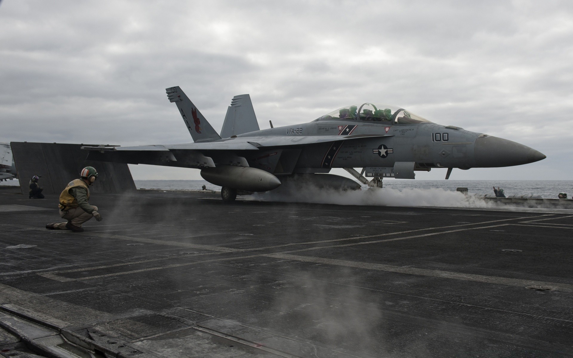 Foto von den Triebwerken eines Kampfjets am Himmel