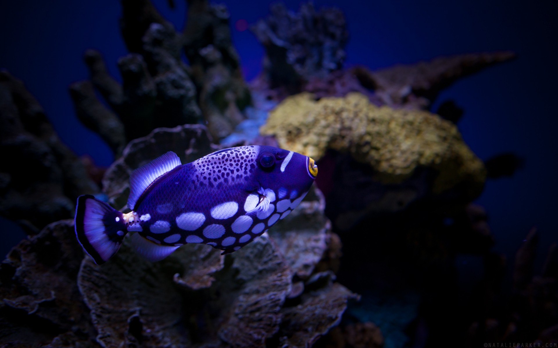 Blaue erbsenfische unterwasserbewohner eines korallenriffs