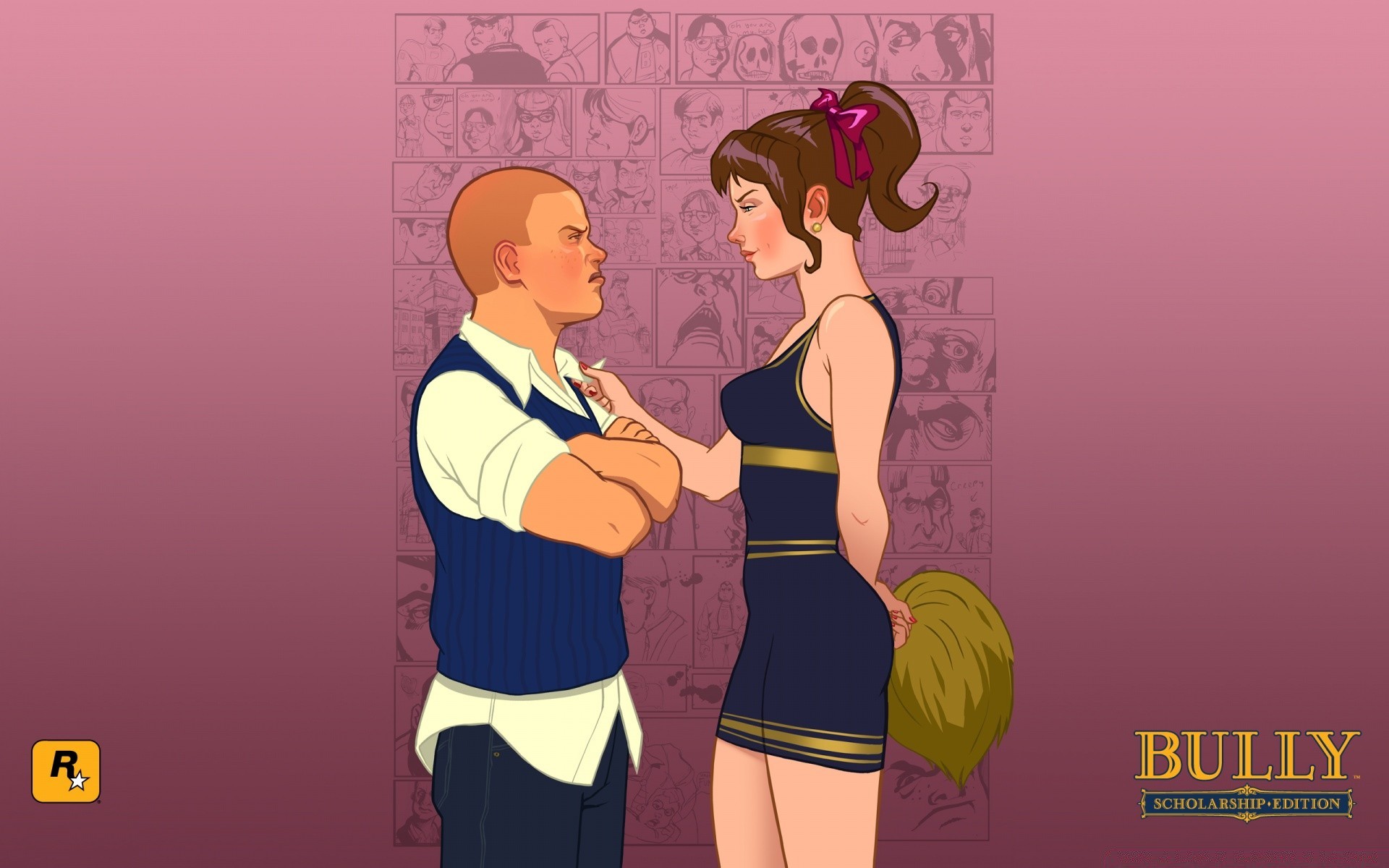 Cheerleader-Mädchen und Schuljunge bei rockstar games
