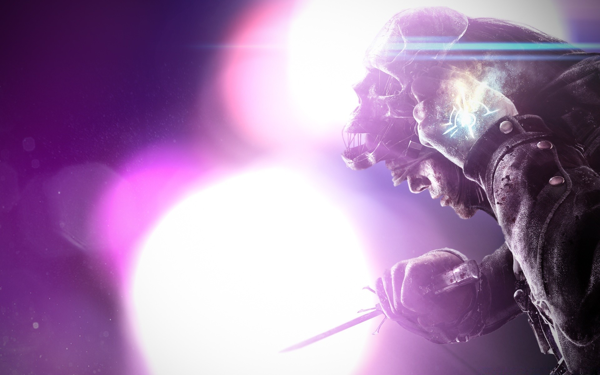 Angriff eines Ninja mit Schwertern auf einen Mann mit einer Pistole