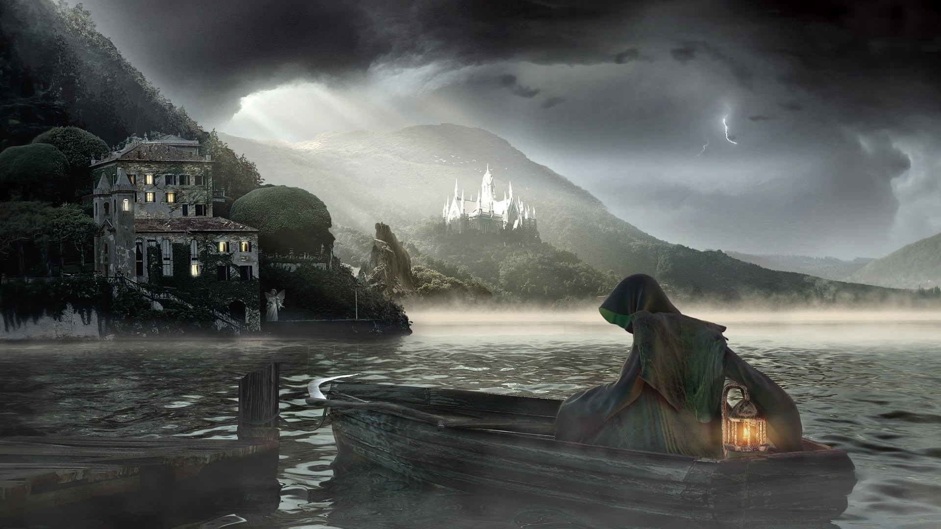 Mysteriöser Mann sitzt in einem Boot im Meer