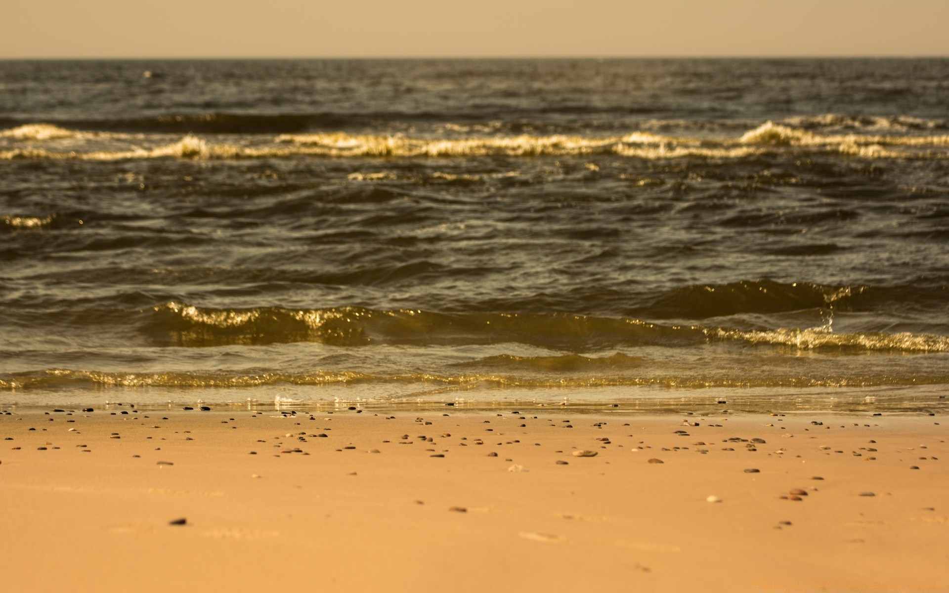 Wunderschöne meereslandschaft mit wellen, krümeligem sand und abfallenden steinenWunderschöne Meereslandschaft mit Wellen, krümeligem Sand und abfallenden Steinen
