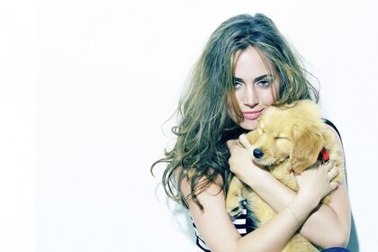 Porträt eines Mädchens mit einem niedlichen Welpen