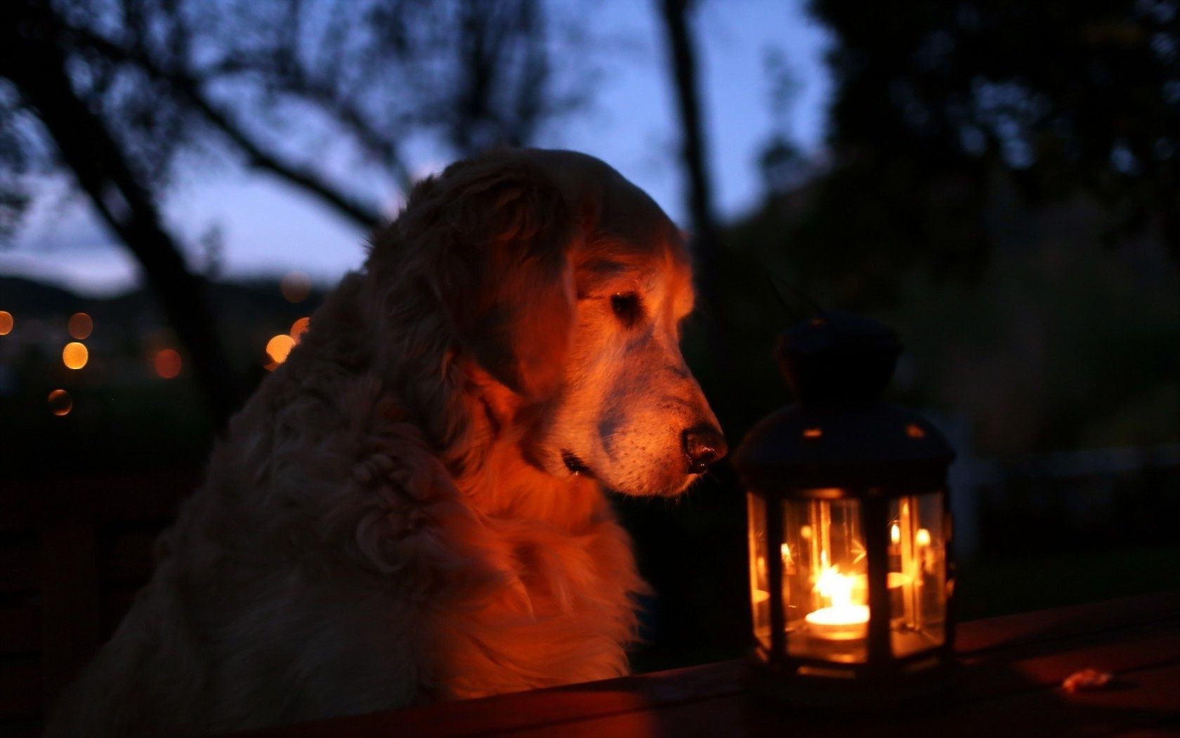 Weißer Hund schaut auf die Lampe