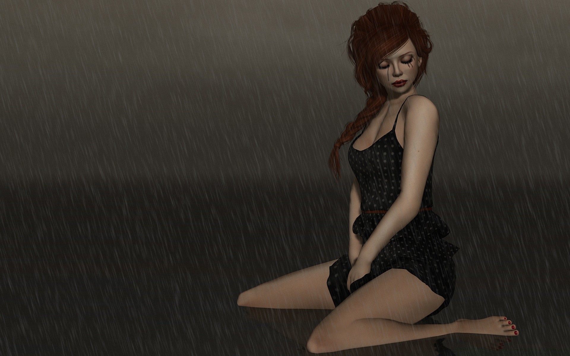Mädchen in schwarz weint im Regen