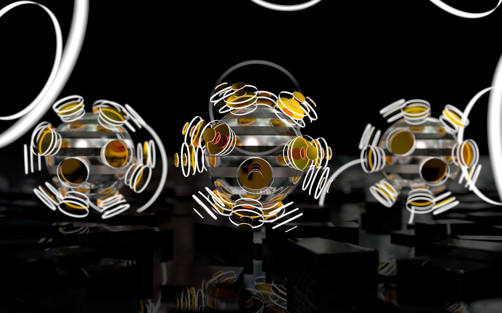 Drei farbige Kugeln auf schwarzem Hintergrund