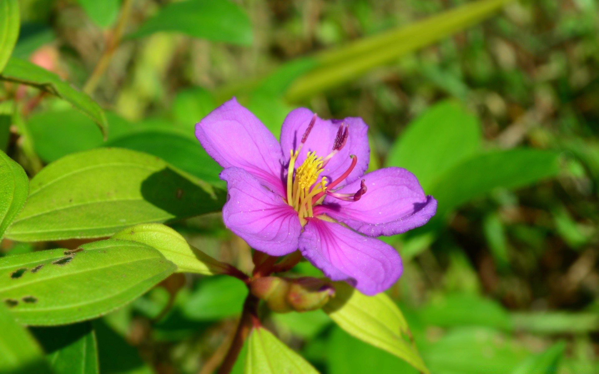 Foto von einer bunten Blume mit violetten Blättern