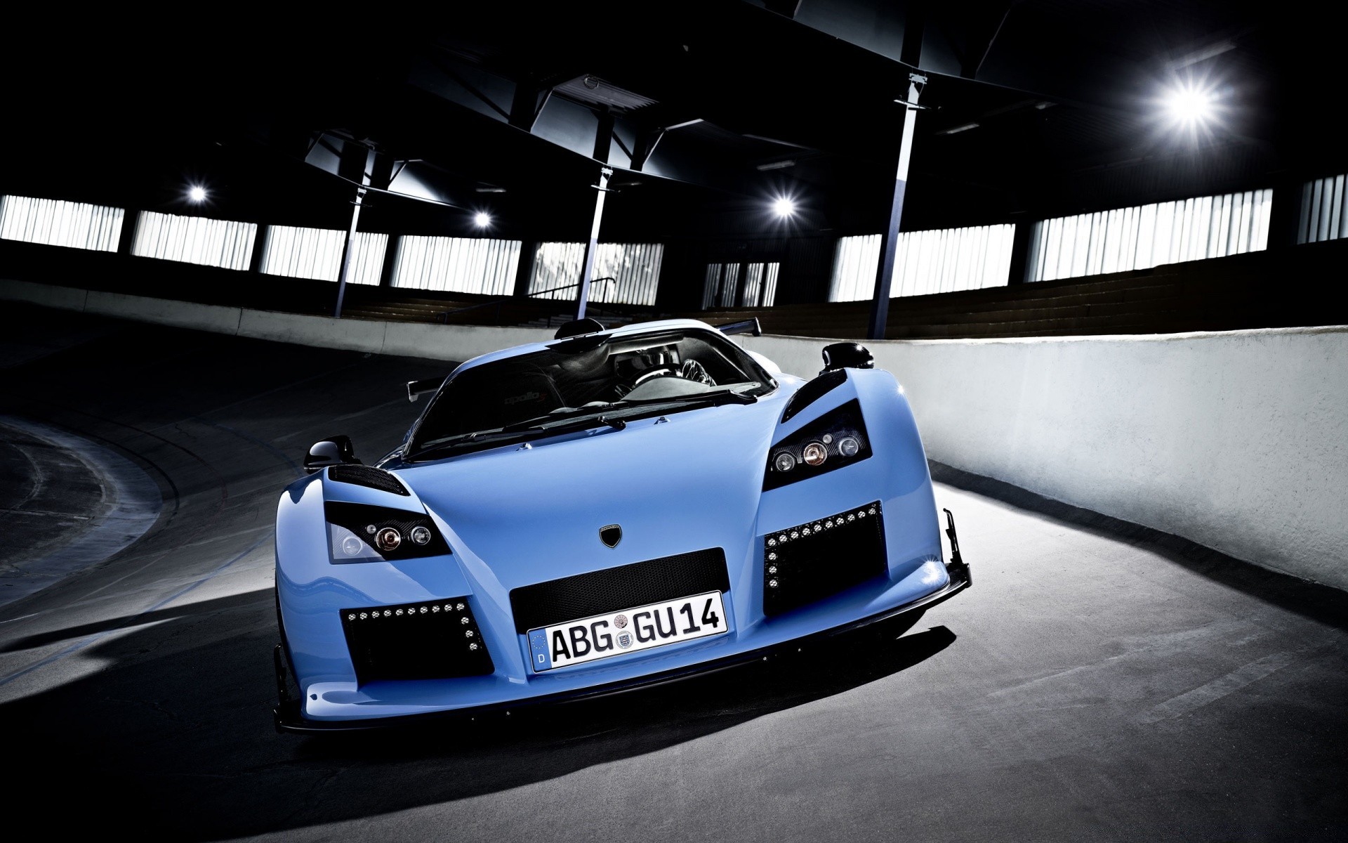 Ein blaues Auto in einem düsteren Tunnel