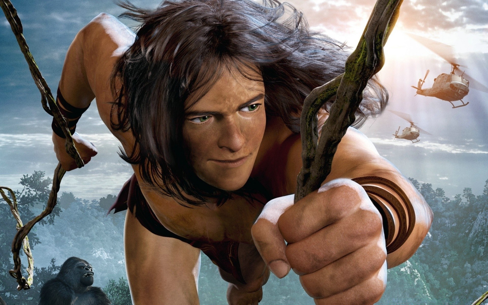Bewaffneter anime-held vor dem hintergrund von high-tech-gebäudenBewaffneter Anime-Held vor dem Hintergrund von High-Tech-Gebäuden