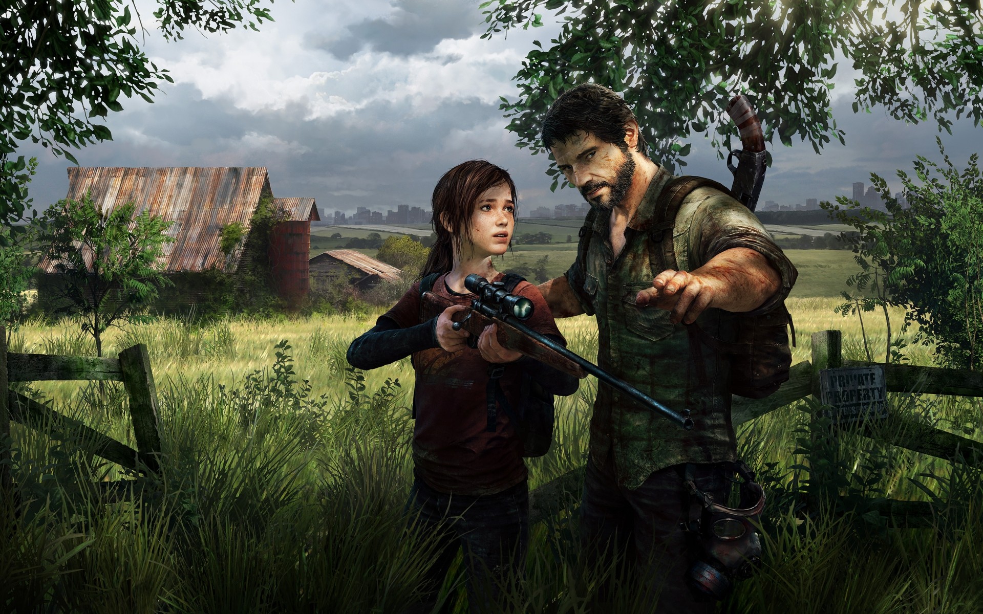 Computerspiel. Ein Mann lehrt ein Mädchen zu schießen
