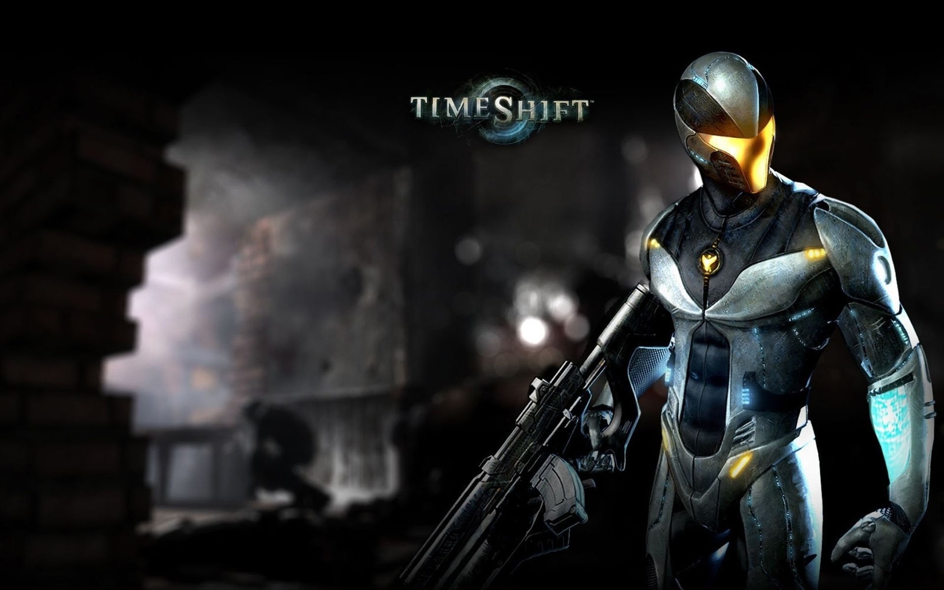 Ein Mann in einem coolen Anzug und einem Helm mit einer Maschinenpistole