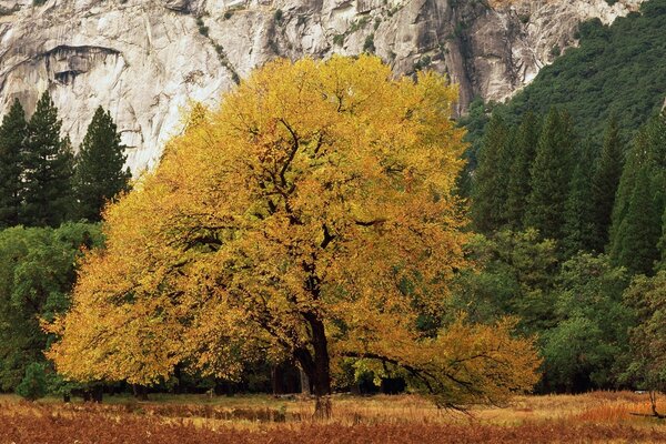 Der nahende Herbst begann, die Bäume gelb zu färben
