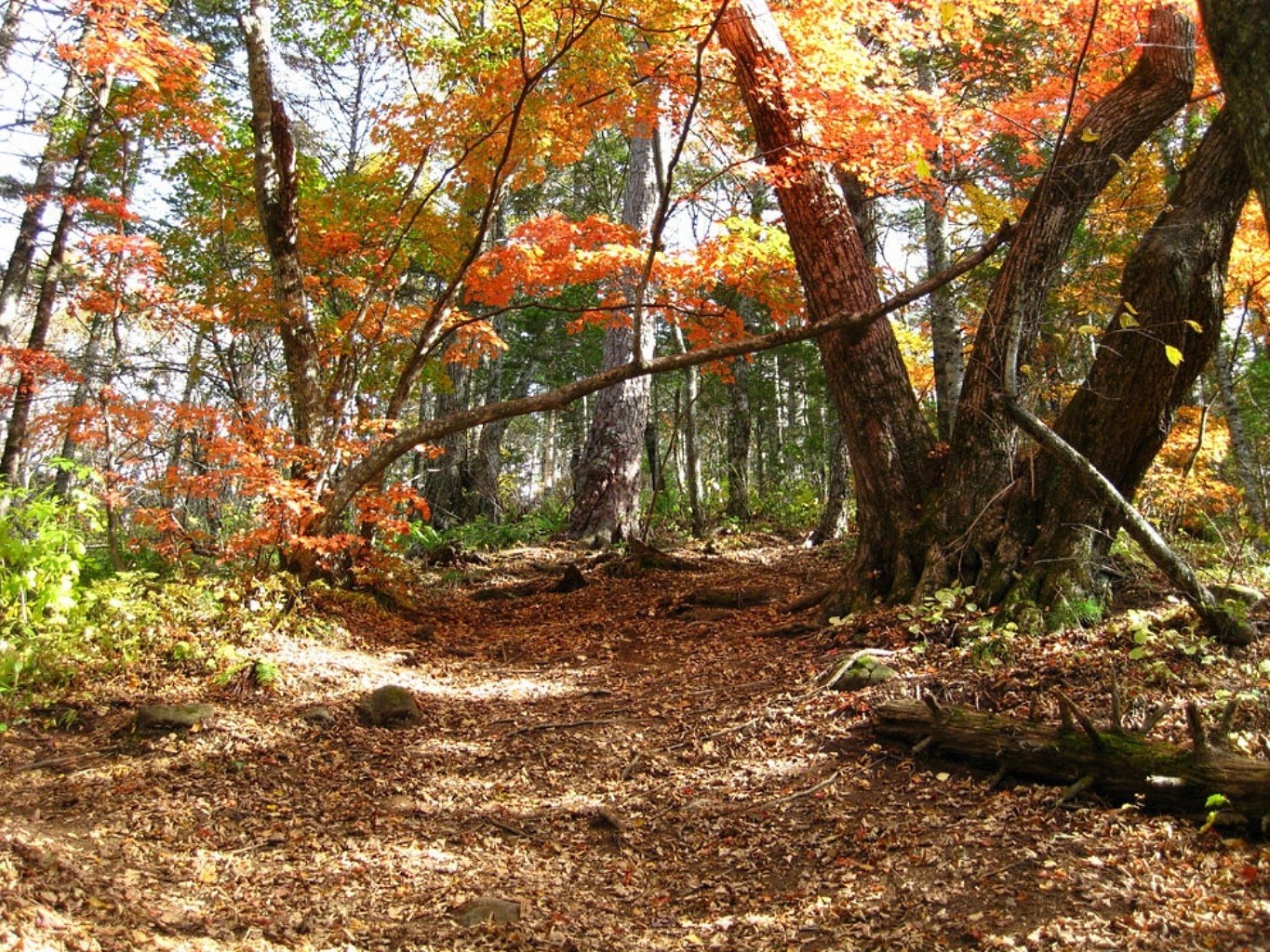 Herbstwald. Bäume im Herbst. Laub auf dem Weg
